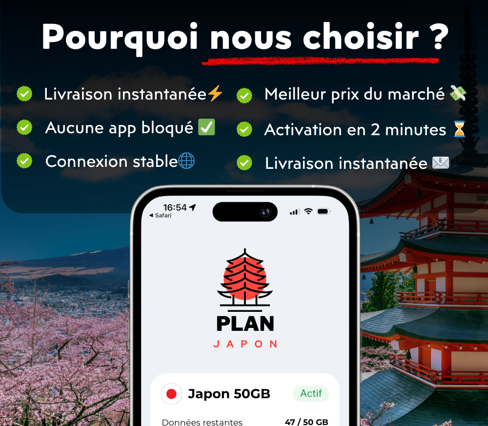 Nuestra eSIM estå especialmente diseñada para Japón, con una conexión råpida y estable en las mejores redes. No hay bloqueos de apps: TikTok, banca, streaming⊠todo funciona. Los precios son inmejorables y te permiten tener internet en Japón sin gastar una fortuna. Ideal para viajar conectado, sin sorpresas.